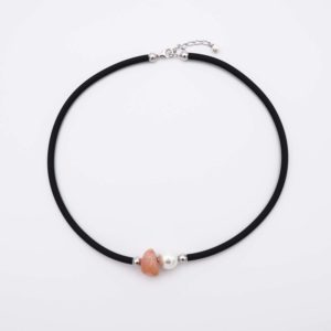 Le collier en perles de Majorque rassemble une perle blanche nacrée et une perle en cornaline. La cornaline avec des nuances orangées et roses apporte de la douceur et de la féminité au collier en perles de Majorque. La cornaline est une pierre qui procure au collier en perles une grande force vitale et une énergie joyeuse.