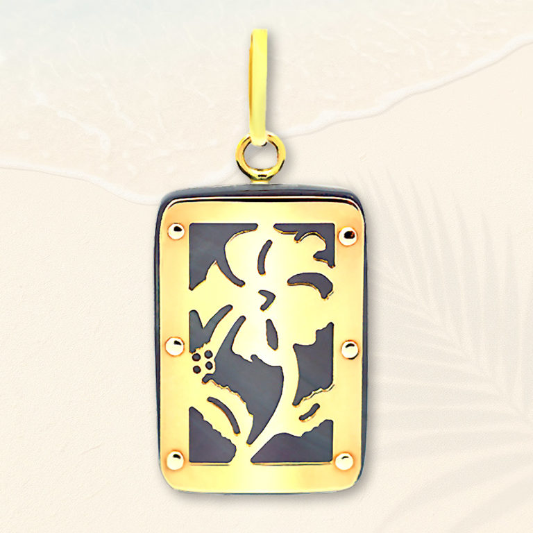 Pendentifs Tiki en or 18K et nacre de Tahiti. Symboles polynésiens de force et protection, alliant éclat précieux et tradition ancestrale.