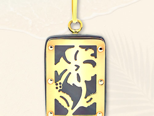 Pendentif en Or 18K et Agate Noire – 17 mm – Hibiscus